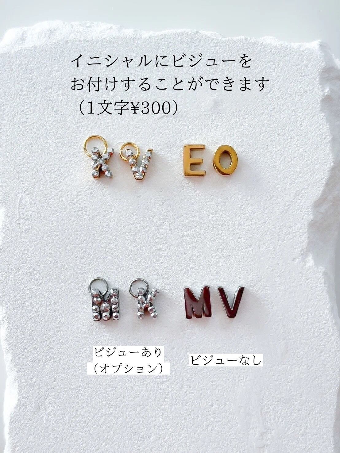 1文字だけアクセントにつけるのも、全ての文字にビジューで華やかさを追求して楽しんでいただくのもおすすめです。特別感のある自分だけのカスタマイズで、さらに自分らしいアクセサリーを楽しんでくださいね。
